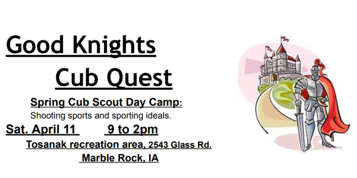 Learning to be Knights with Action and Deeds. Planned Activities Archery, BB guns, knight gear, hike, Pony Polo(riding sticks that are ponies with soft mallets and balls.) Bring: Sack Lunch, Cub Scout 6 Esssentials, Water bottle, Health Form Parts A and B, dress for the weather.